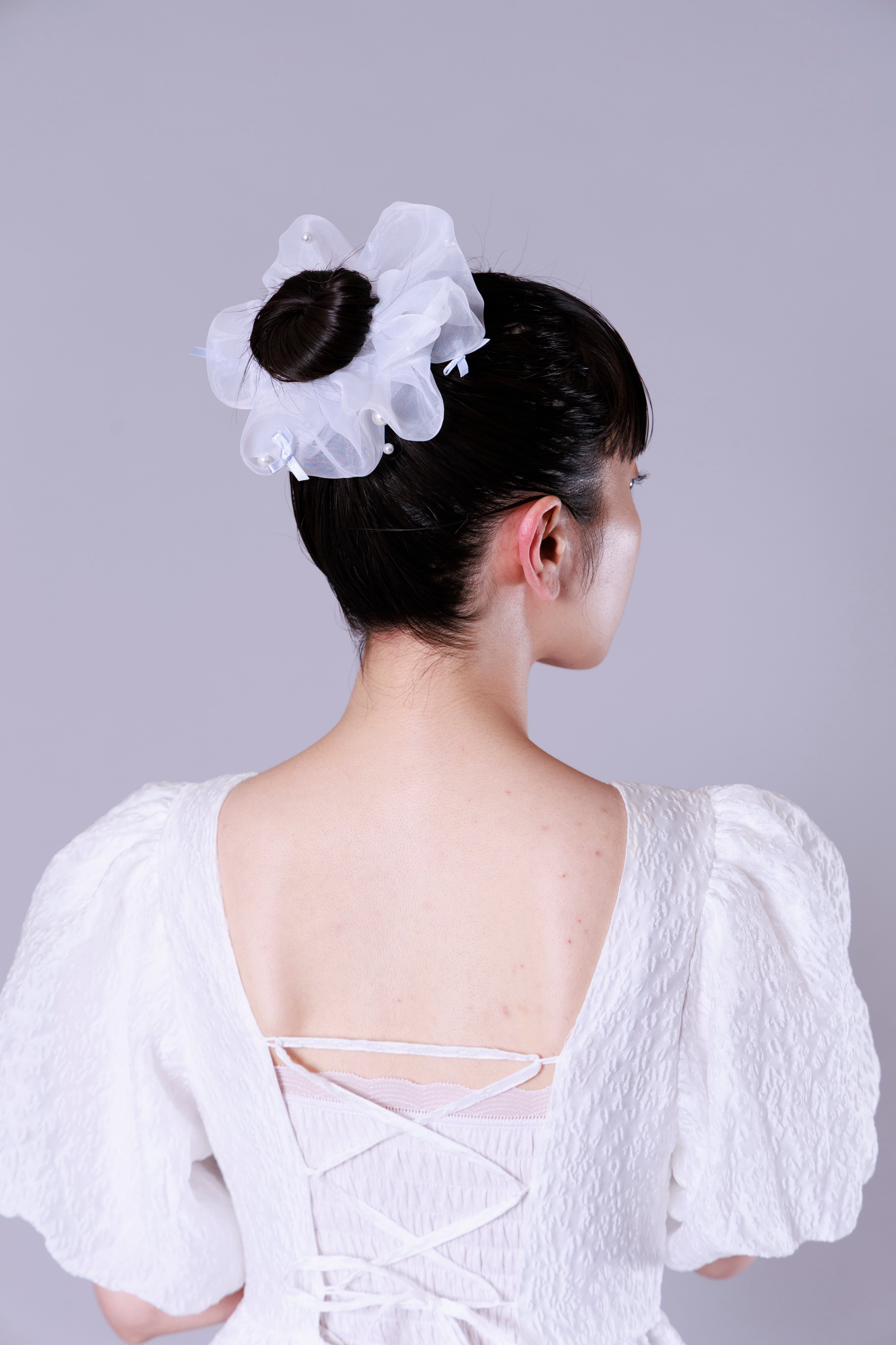 お団子に一重でスポッとはまるよう、きつめにゴムを縛っております。